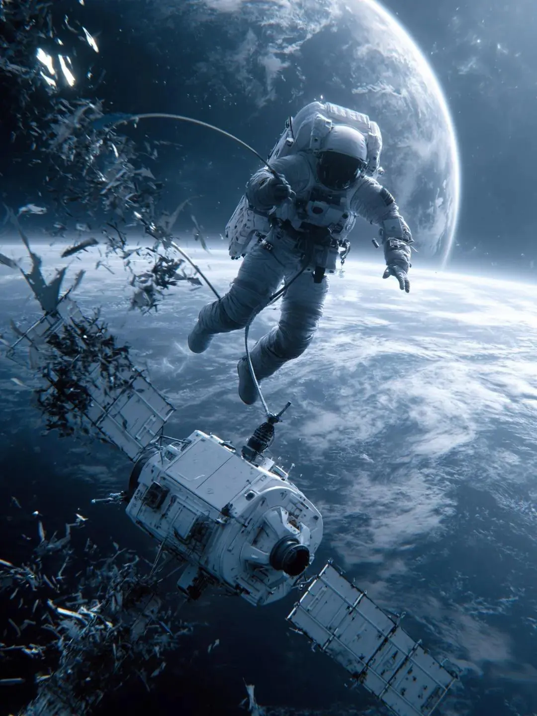 A dramatic cinematic scene captures an astronaut in a white [...]