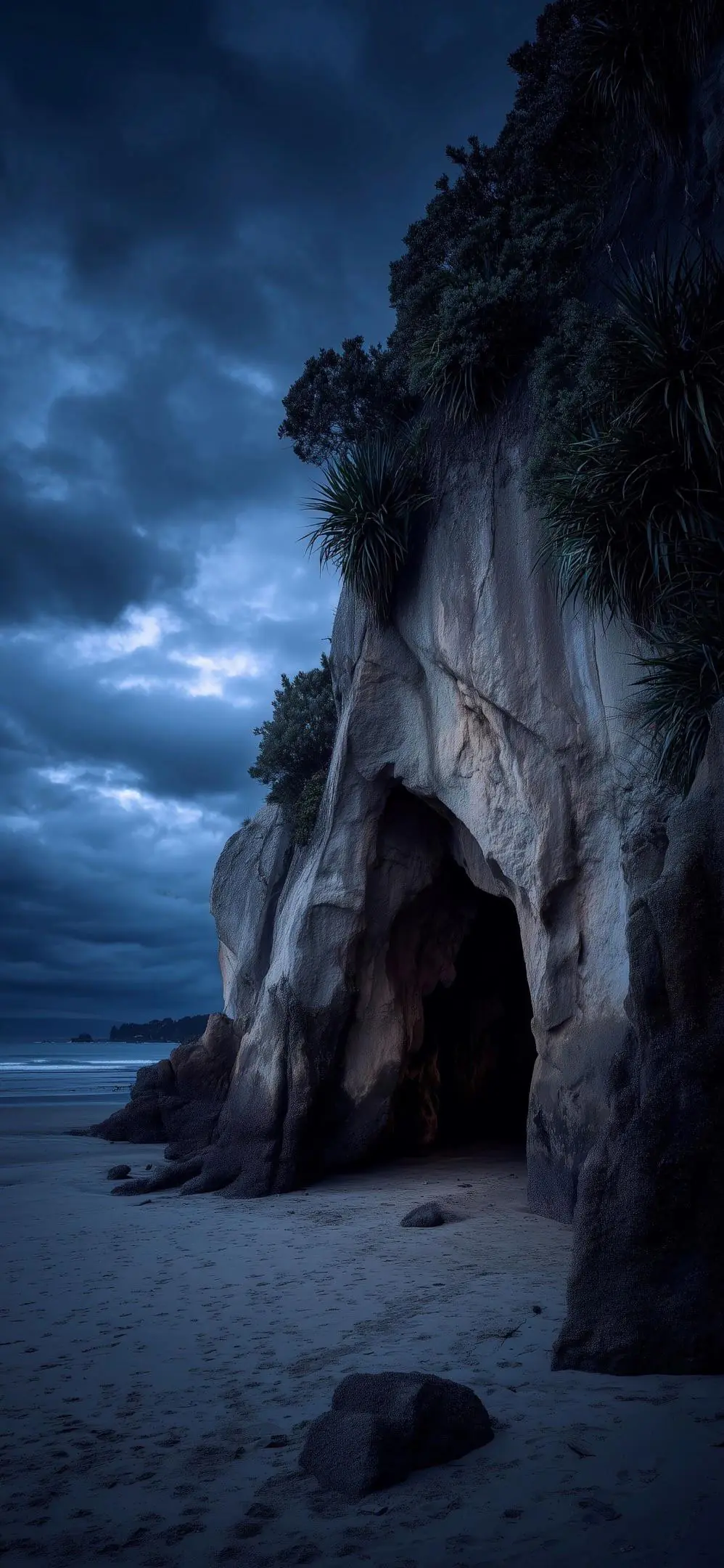 A dark coastal cave opening sits at the base of [...]