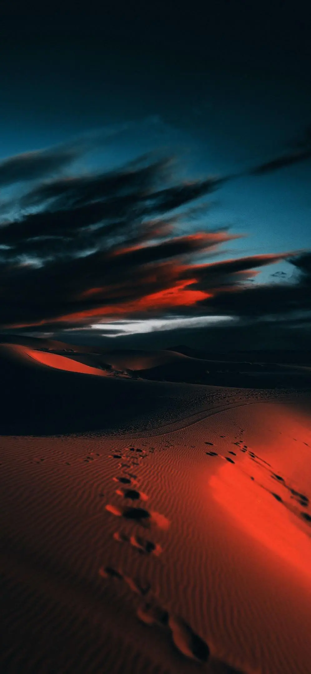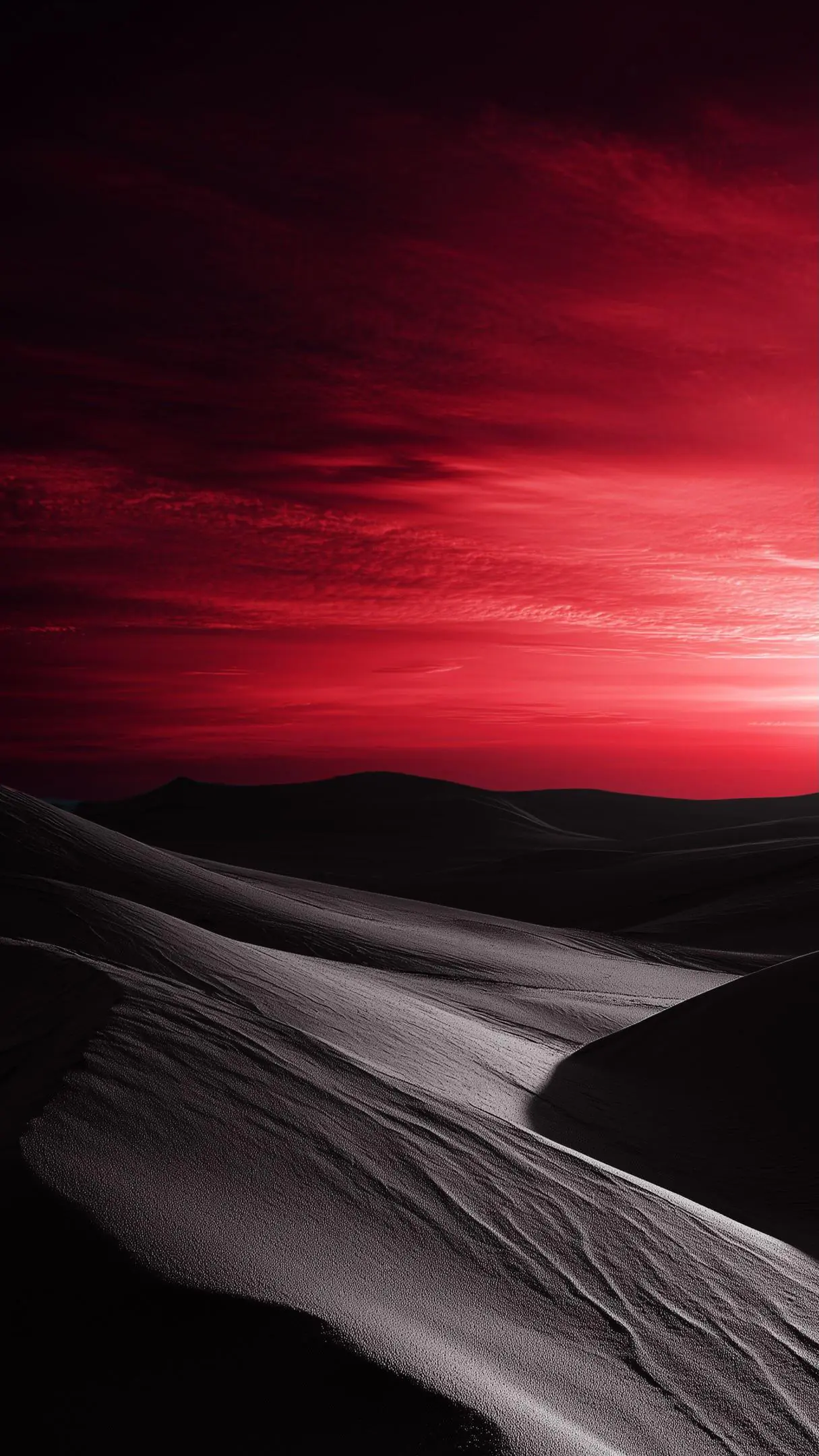 A moody desert dune landscape is bathed in deep red [...]