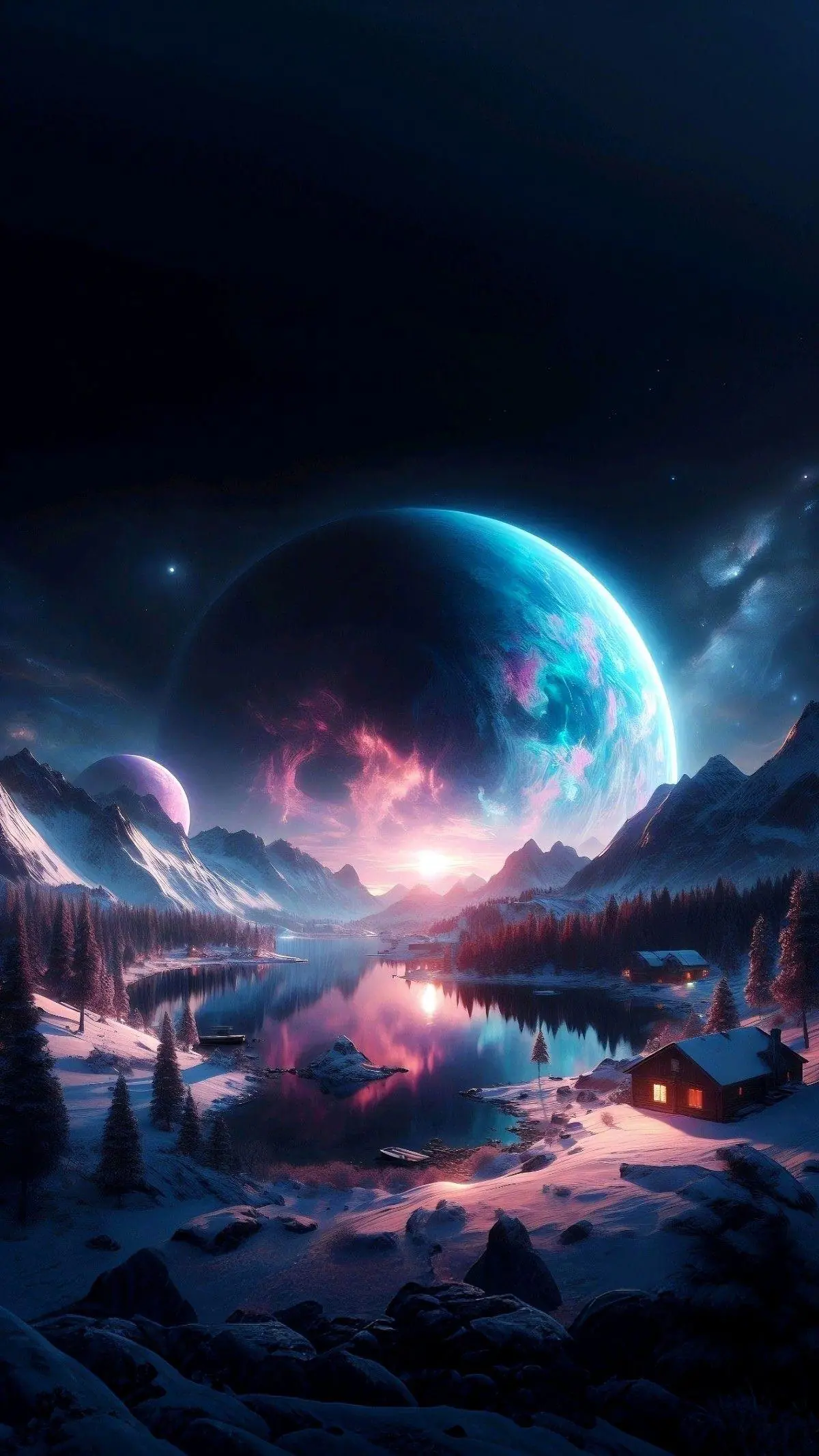 A fantastical surreal world features a teal-blue river cutting through [...]