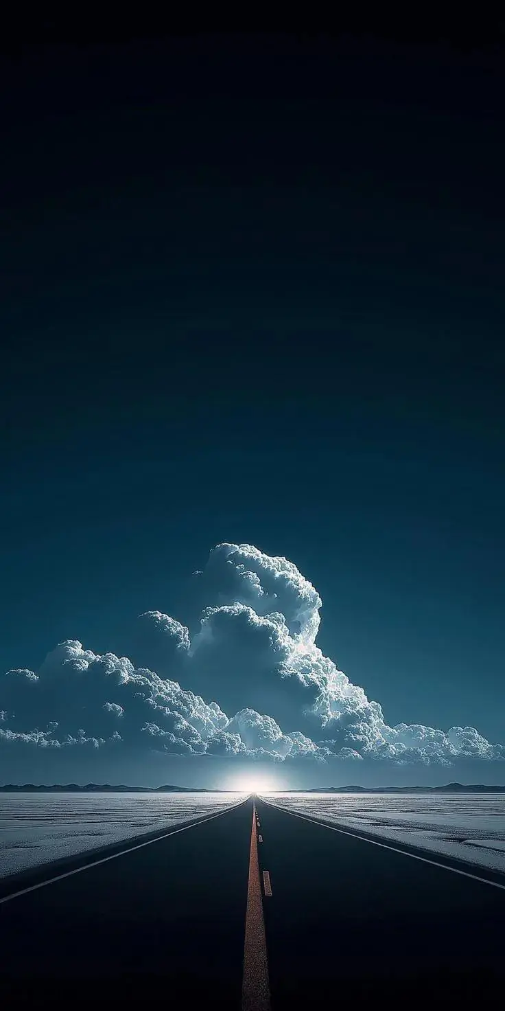 A perfectly straight highway stretches to a glowing vanishing point [...]