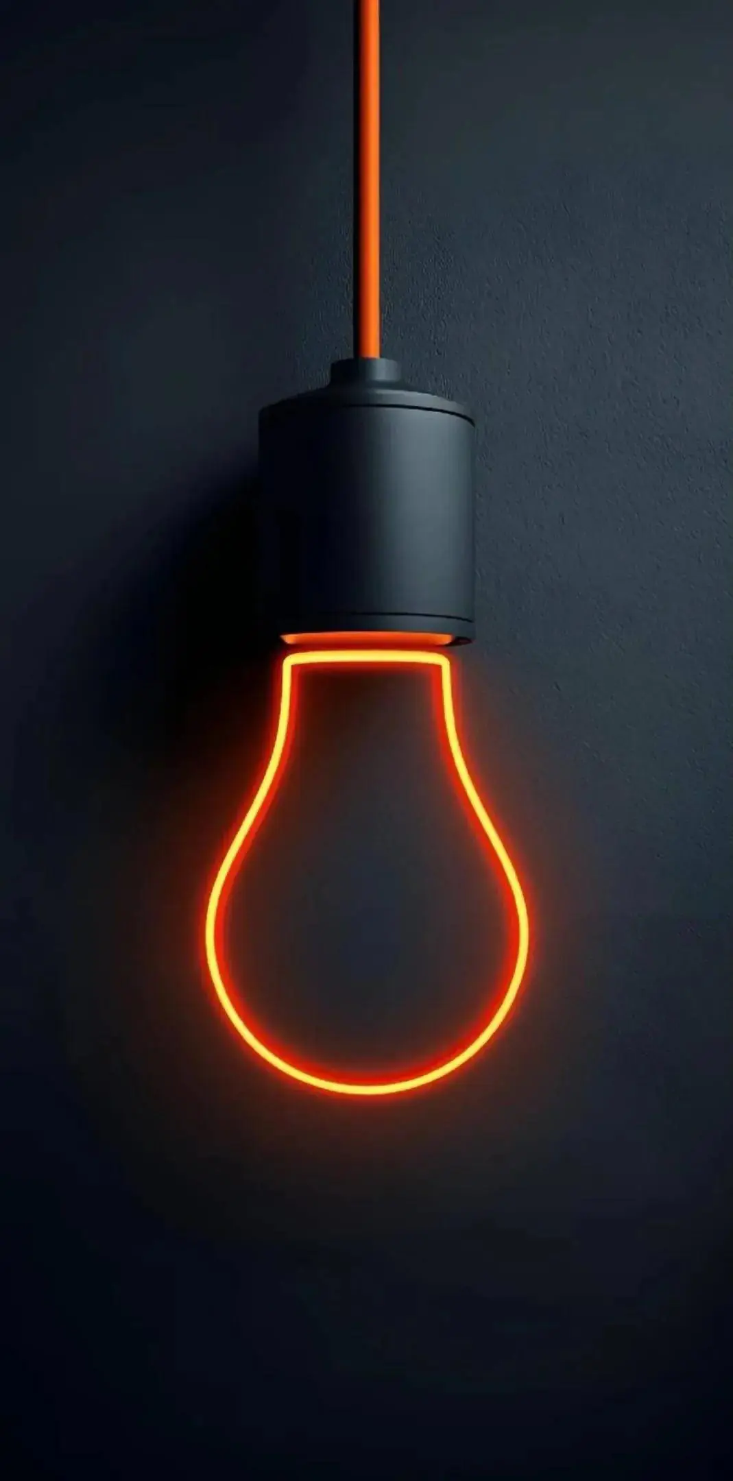 A sleek pendant light bulb with a hollow neon-orange outline [...]