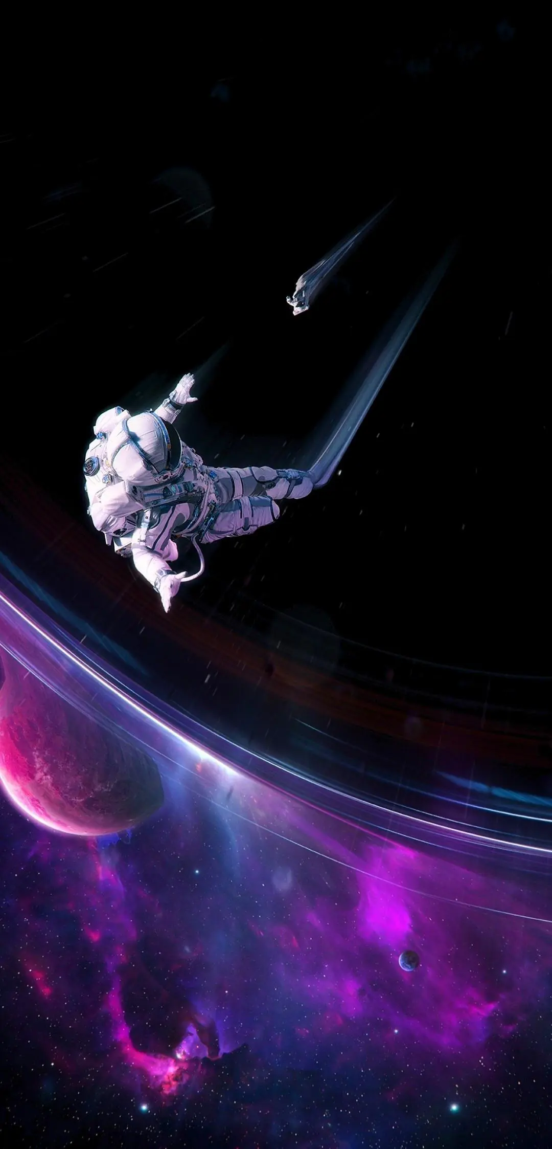 A vivid digital illustration shows an astronaut drifting through deep [...]