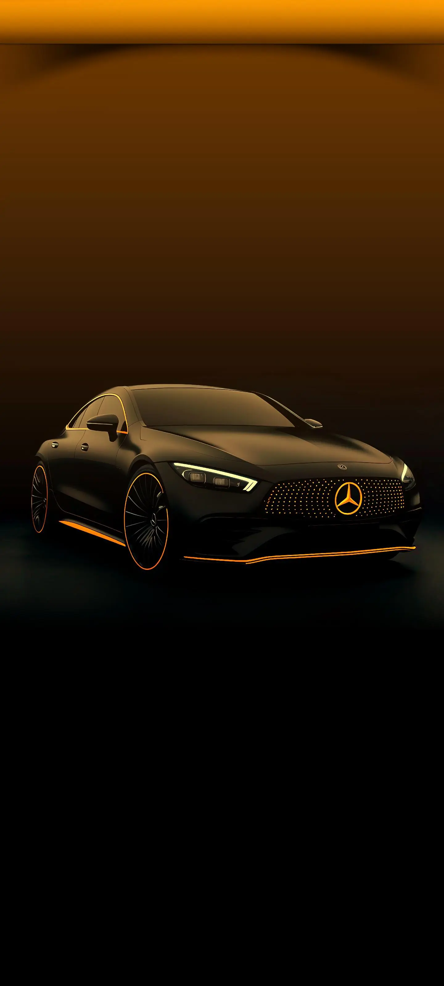 A sleek black luxury sedan with vivid orange accent lighting [...]