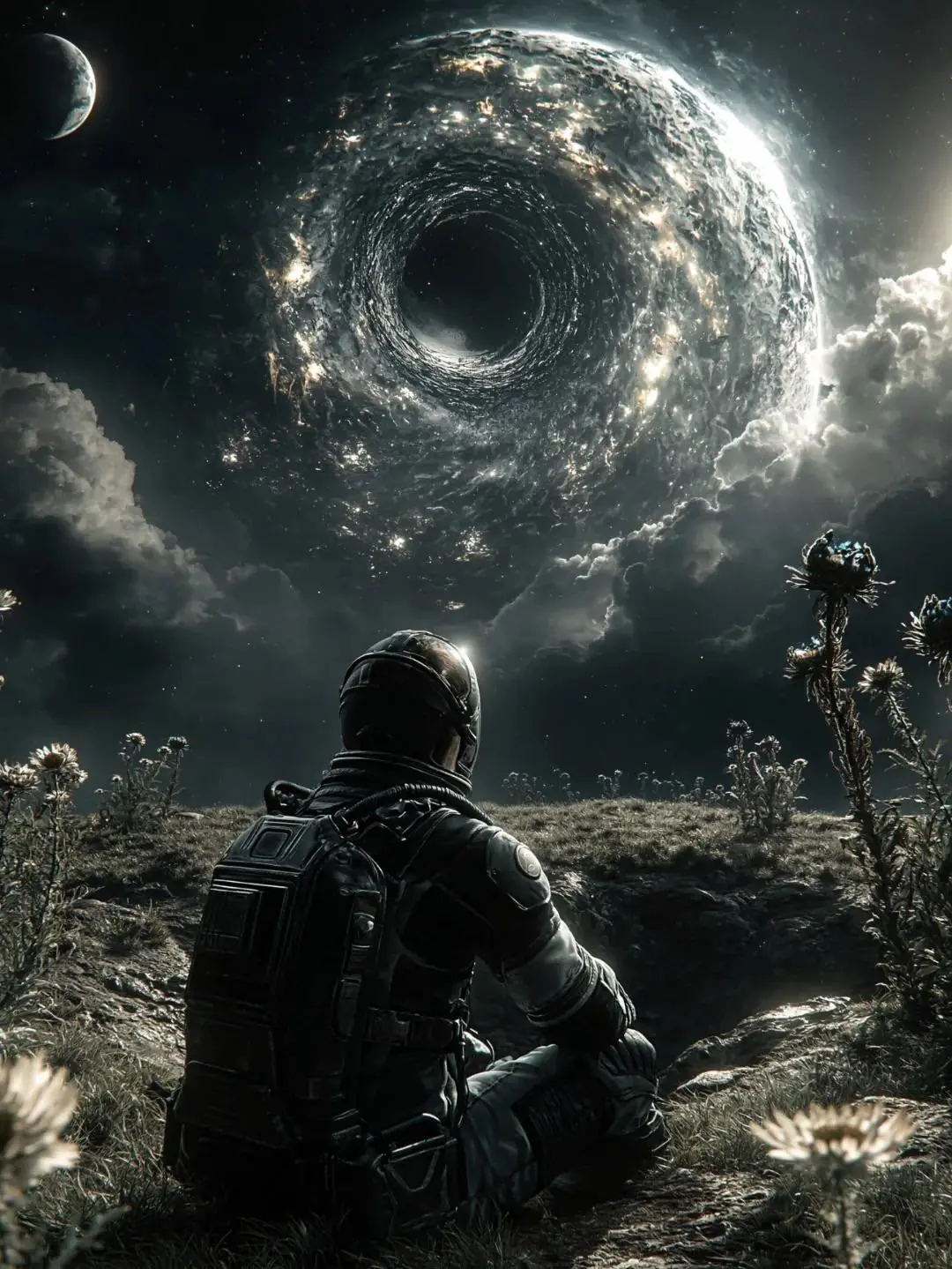 A tilted orange-glowing accretion disk spirals around a dark central [...]