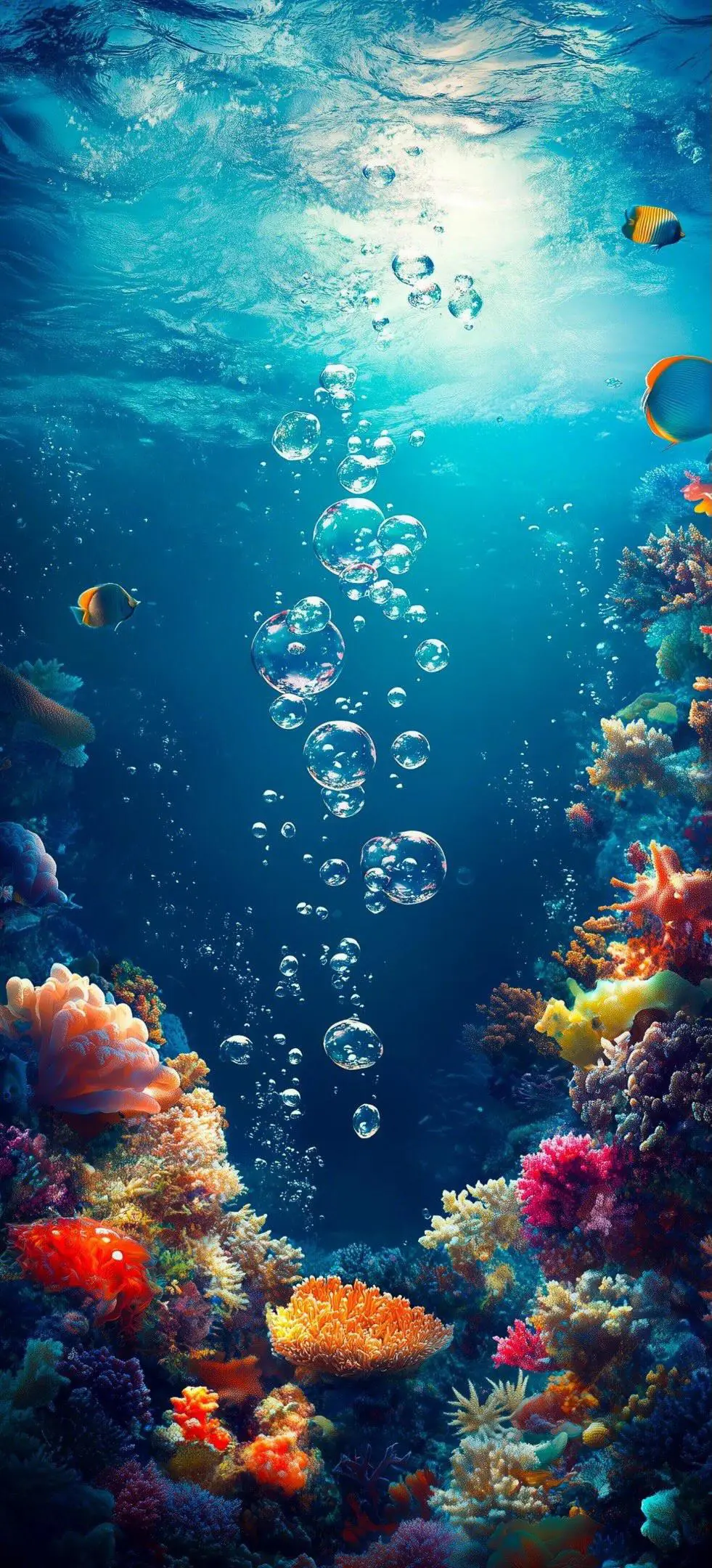 A vertical chain of large transparent bubbles rises gracefully from [...]